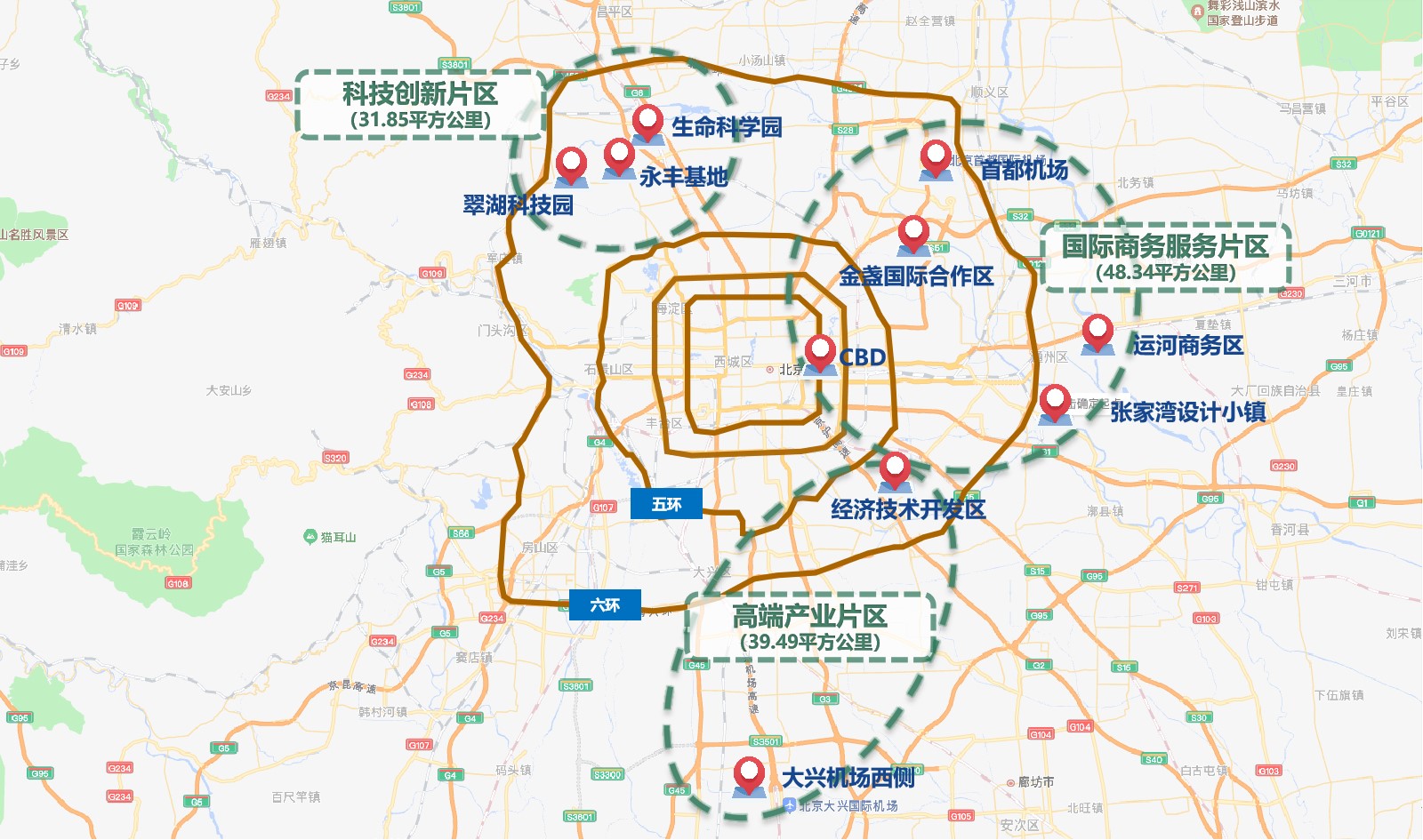 大興區:大興國際機場、亦莊經濟開發區