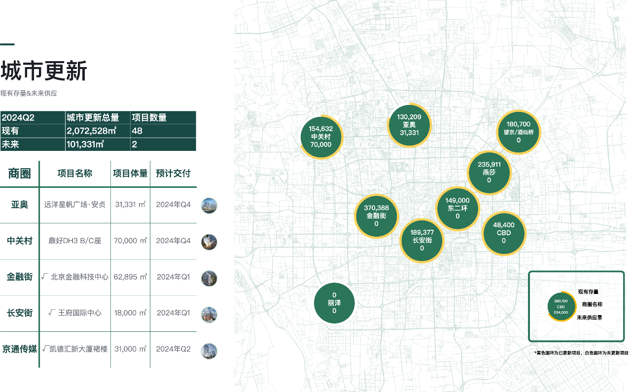 從城市更新項目來看,2024年全年預計還將有2個城市更新項目入市,為亞奧、中關村商圈的寫字樓市場帶來超過10萬平方米的新增供應量。